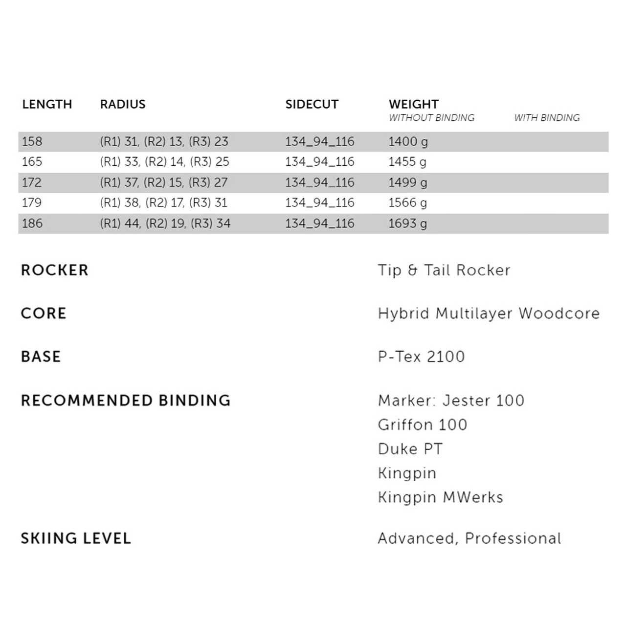 - Recommended Binding: Jester 100, Griffon 100, Duke PT, Kingpin, Kingpin MWerks